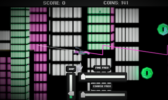Your runner follows the path of a basic waveshape. Drag and drop the controls to adjust the waveshape and let go to confirm. Avoid the building obstacles and collect coins and powerups. Visit the shop to spend your coins on upgrades